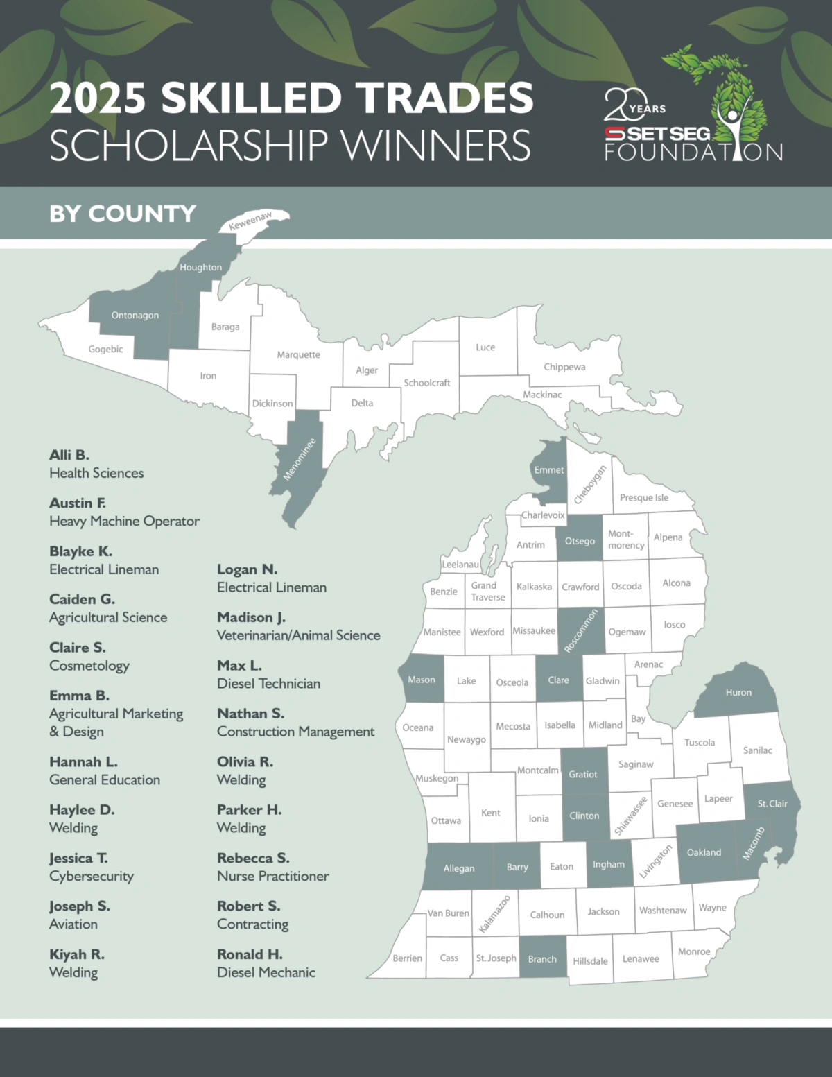 Big news! The SET SEG Foundation is doubling its commitment to Michigan students. For the first time, we’re increasing our Skilled Trades Scholarship from $500 to $1,000 per student!